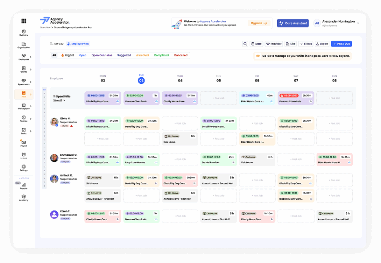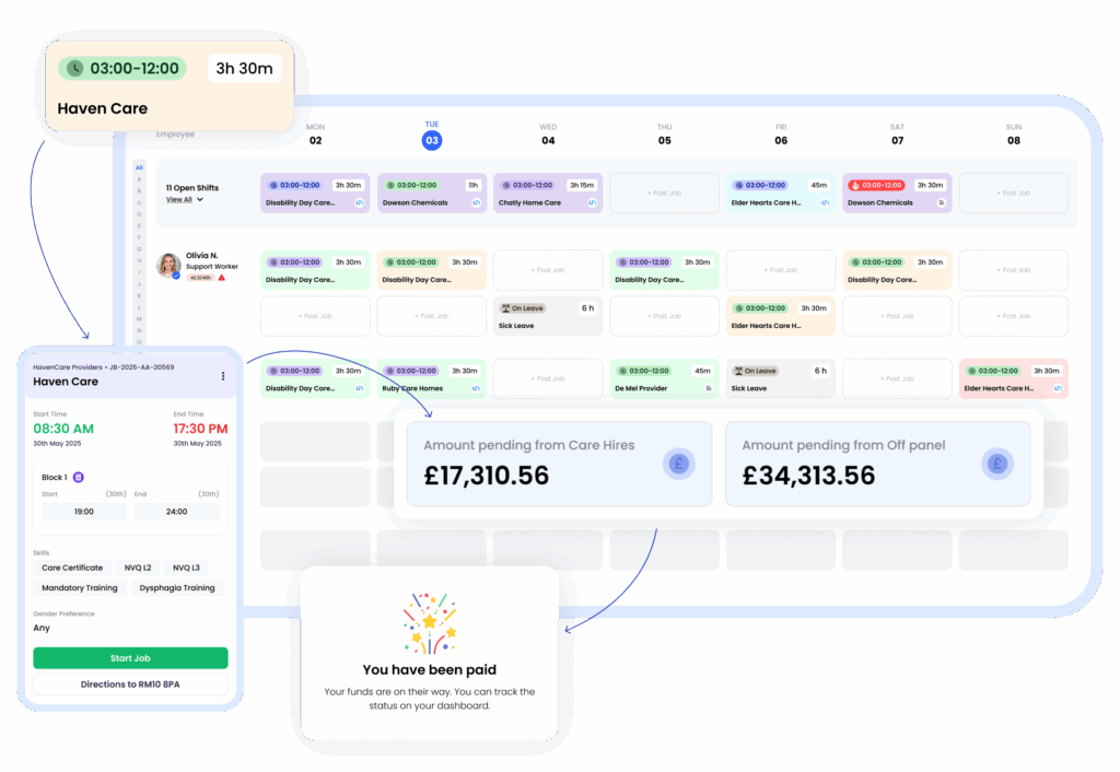 Create, assign, and manage shifts based on staff availability, skill set, qualifications and compliance.