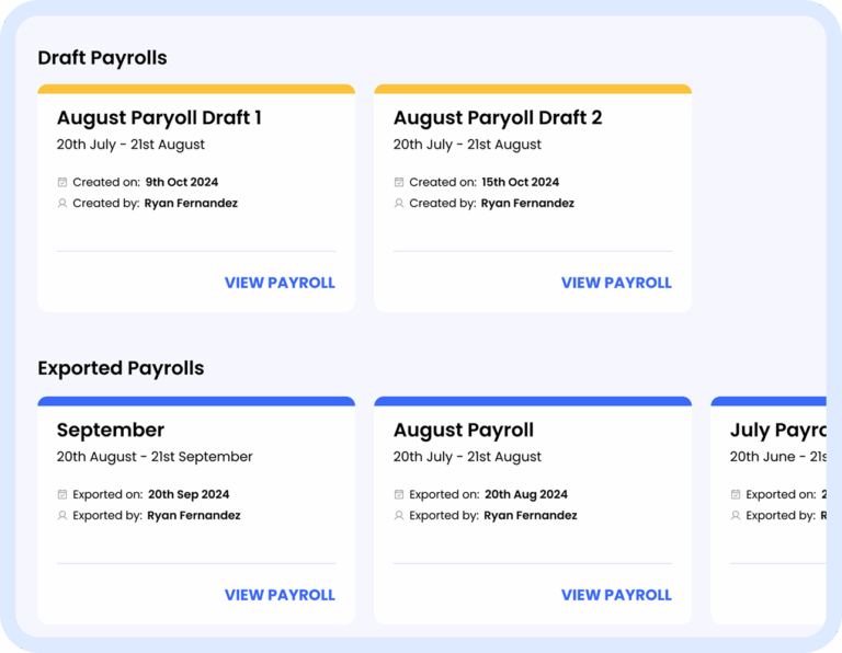 Create payrolls for any period and have the payroll engine do the lifting for you.