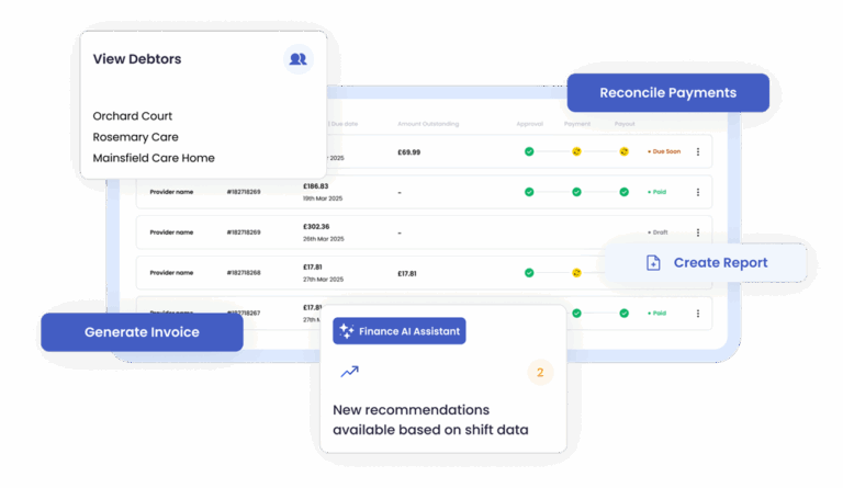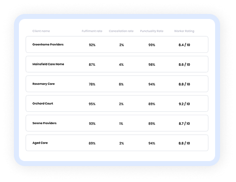 Monitor transaction history, agreed rates, repeat bookings, favourite workers, shift fulfilment and potential contract risks.